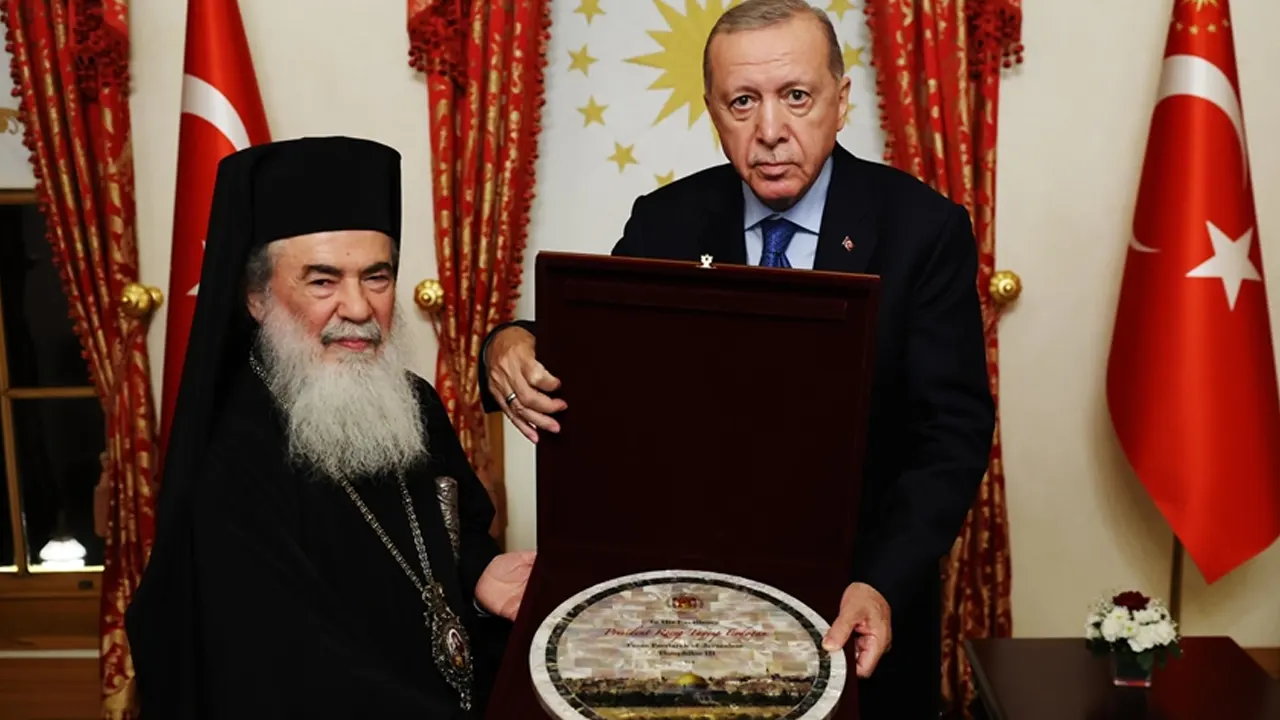 জেরুজালেমের গ্রীক অর্থোডক্স প্যাট্রিয়ার্ক (পাদরি) থিওফিলাস জিয়ানোপোলোস তুরস্কের রাষ্ট্রপতি রিসেপ তাইয়েপ এরদোয়ানকে একটি চুক্তিপত্রের প্রতিলিপি উপহার দিয়েছেন। ৬৩৮ সালে মুসলিমদের