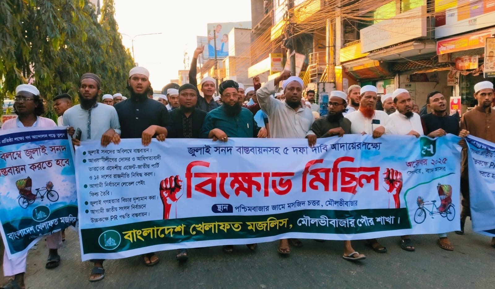 মৌলভীবাজারে বাংলাদেশ খেলাফত মজলিসের বিক্ষোভ মিছিল অনুষ্ঠিত