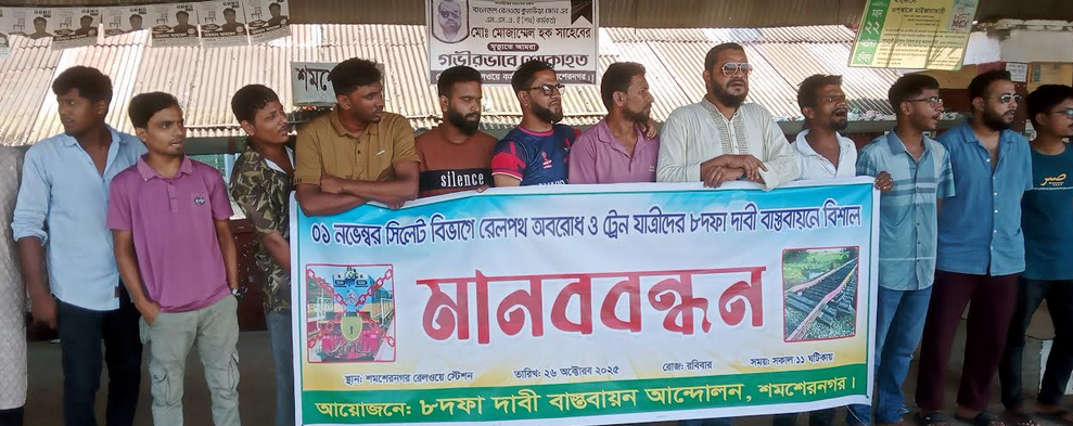 ৮ দফা দাবিতে শমশেরনগর রেলওয়ে স্টেশনে মানববন্ধন ও বিক্ষোভ