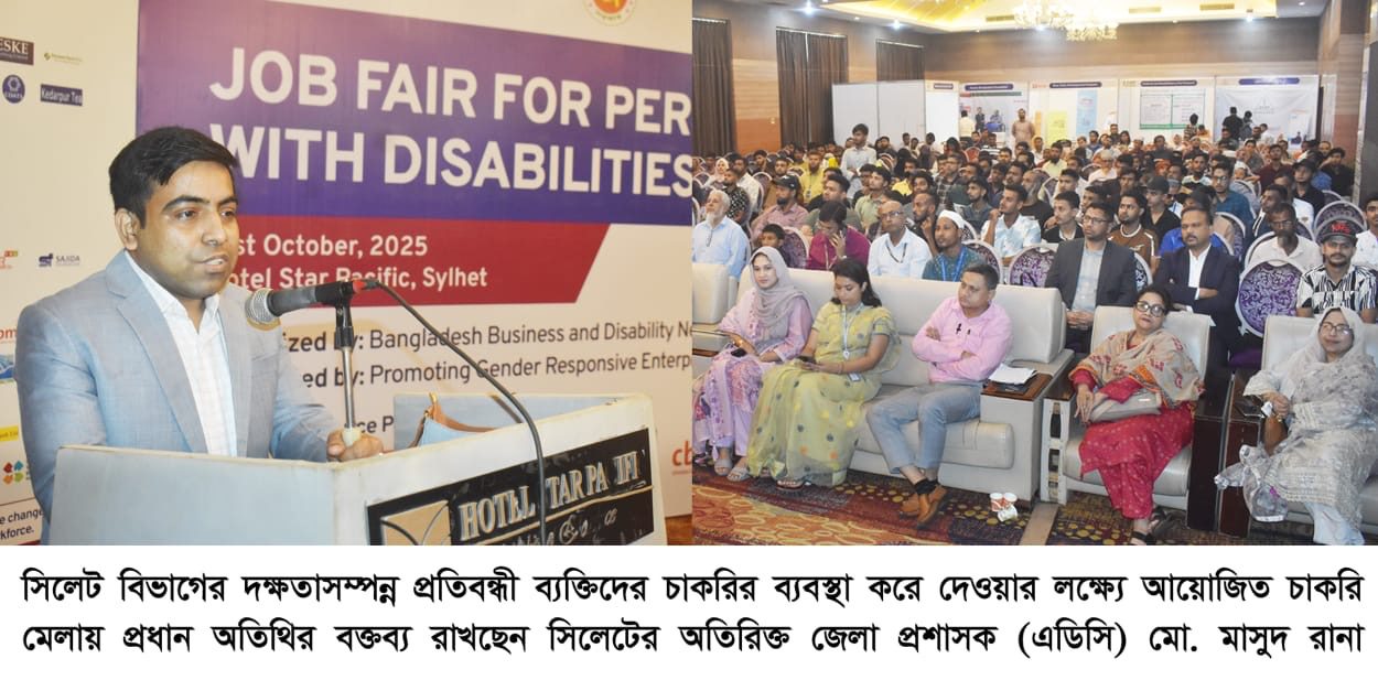 সিলেট বিভাগের দক্ষতাসম্পন্ন প্রতিবন্ধী ব্যক্তিদের চাকরির ব্যবস্থা করে দেওয়ার লক্ষ্যে চাকরি মেলা অনুষ্ঠিত হয়েছে। বাংলাদেশ বিজনেস অ্যান্ড ডিজ্যাবিলিটি নেটওয়ার্ক (বিবিডিএন),